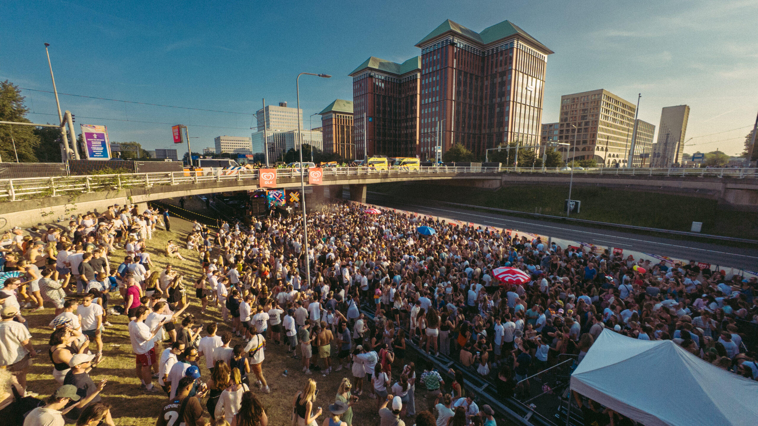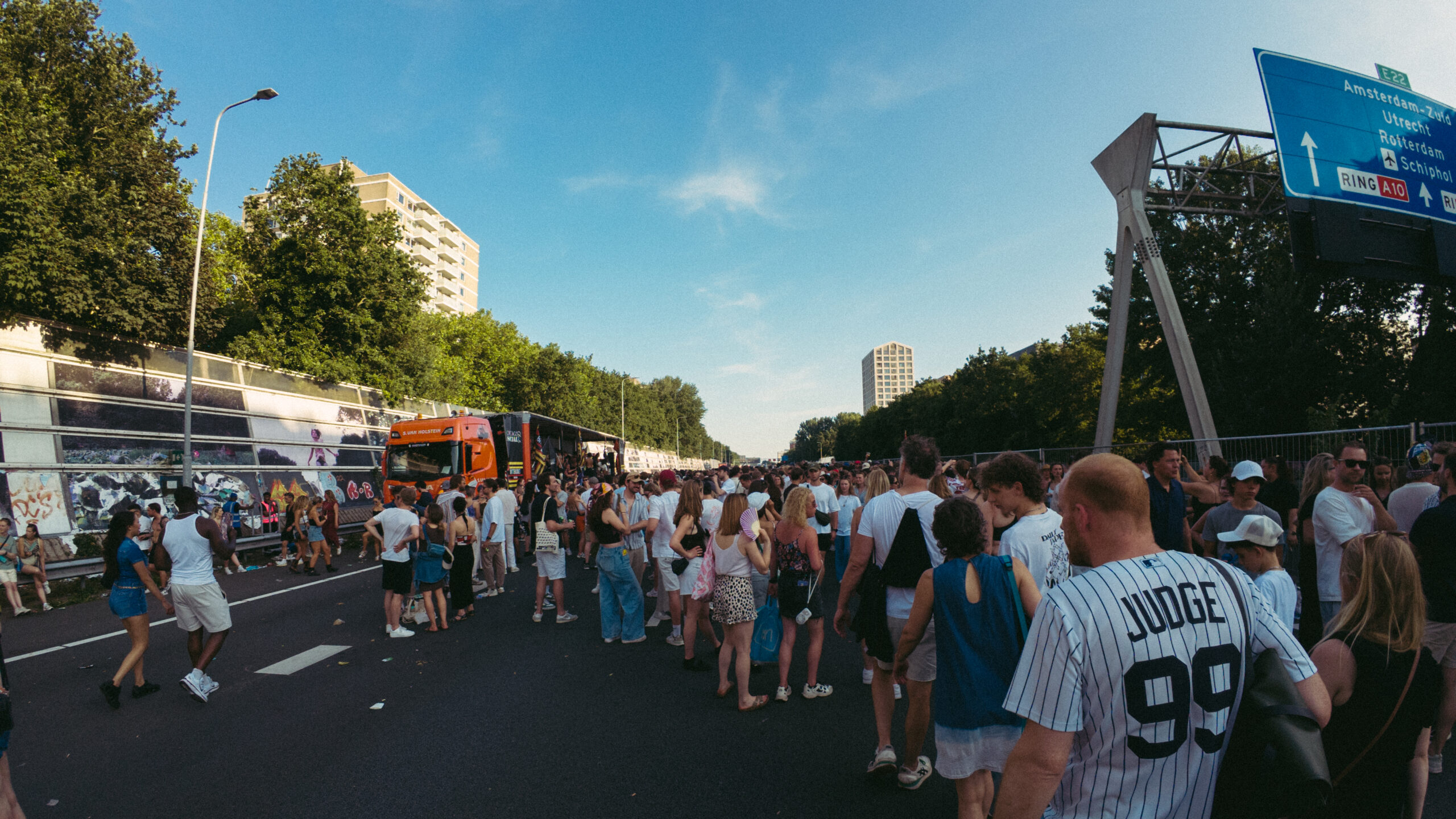 Amsterdam, 21 juni 2025 – Een snelweg vol dansende mensen, foodtrucks en livemuziek: het was een zeldzaam gezicht op zaterdagmiddag toen de A10, normaal het domein van toeterende auto’s en files, werd afgesloten voor het grootste verjaardagsfeest van de hoofdstad. Ter ere van het 750-jarig bestaan van Amsterdam werd een deel van de ringweg omgetoverd tot festivalterrein. Het ‘Festival Op de Ring’ trok naar schatting ruim 200.000 bezoekers en markeerde een historisch moment: nooit eerder werd de ringweg op deze schaal opengesteld voor voetgangers.